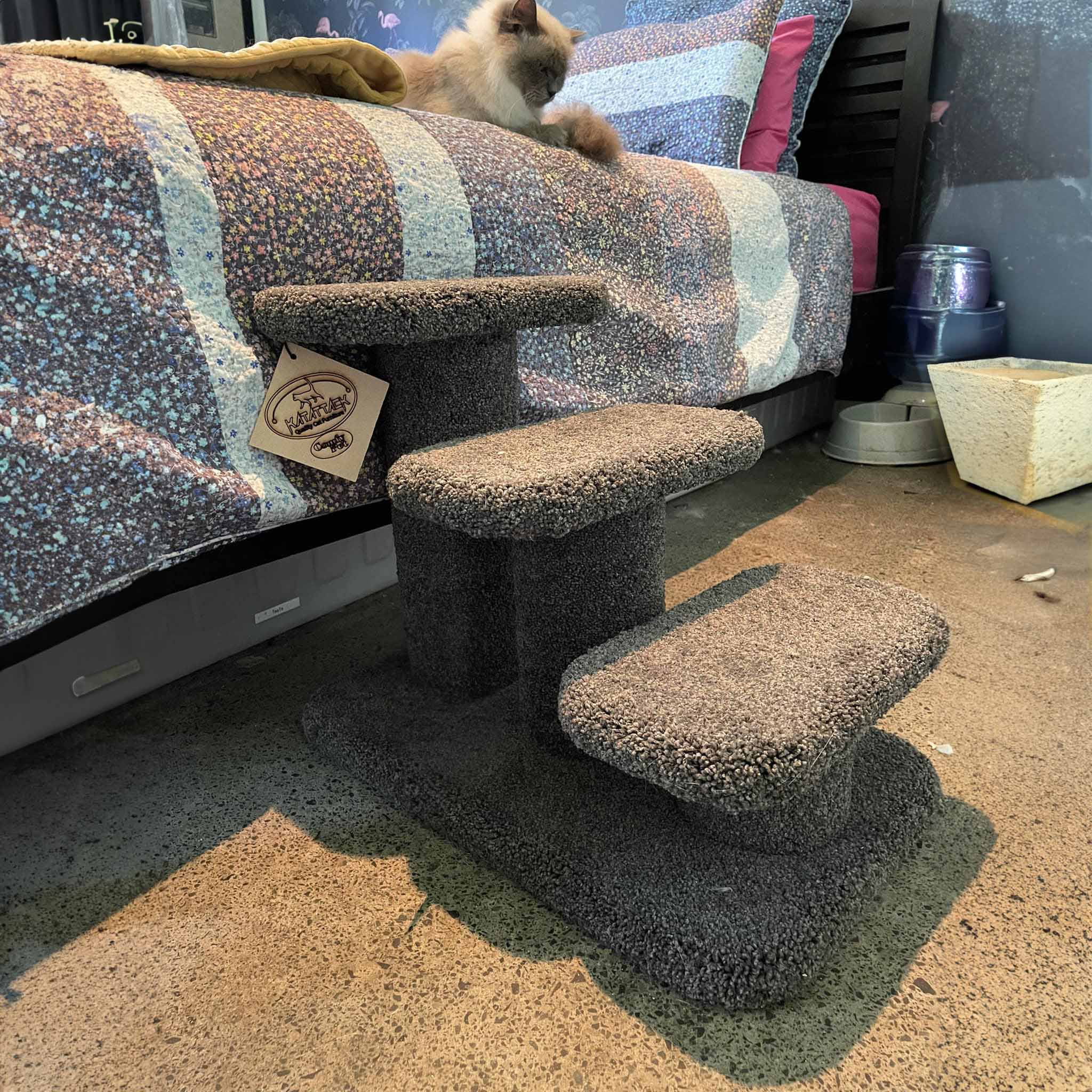 - Introducing the KatAttack Steps V1 (for end of bed) - A perfect solution for senior cats who face difficulties jumping or need a little help getting onto your bed. After all, it's their bed too, and they have full permission to use it. If you need the unit to be slightly higher or lower, just let us know in the cart notes, and we'll tailor it to your feline companion's requirements. Provide your cherished senior cat the support they need with our KatAttack Steps