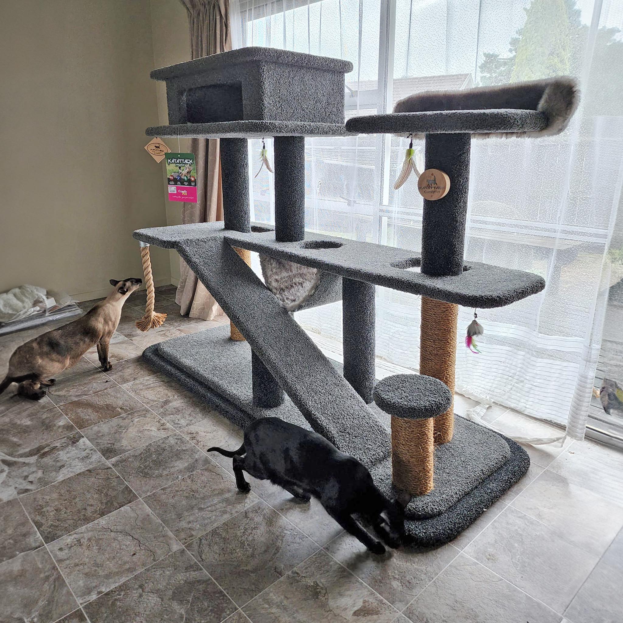 The Vegas has become a widely favoured choice in commercial catteries across New Zealand. Its robust construction and engaging design make it suitable for multiple cats, providing a space where they can play, explore, and relax.